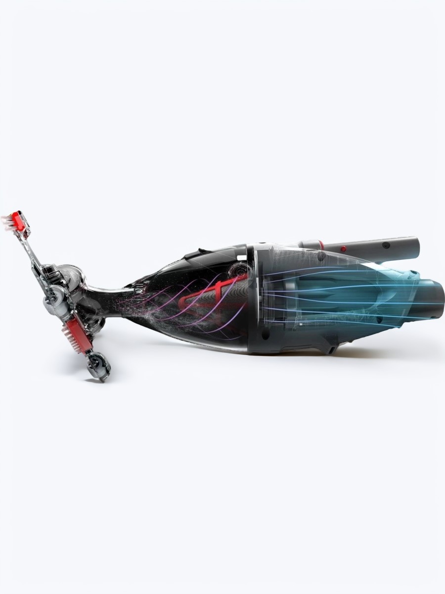 Благодаря простой защелке открыть пылесос и удалить собравшийся мусор не составит труда. Специальная вращающаяся головка круглой формы рассчитана на усиленное всасывание. Магнитный переключатель обеспечивает абсолютную герметизацию пылесоса.