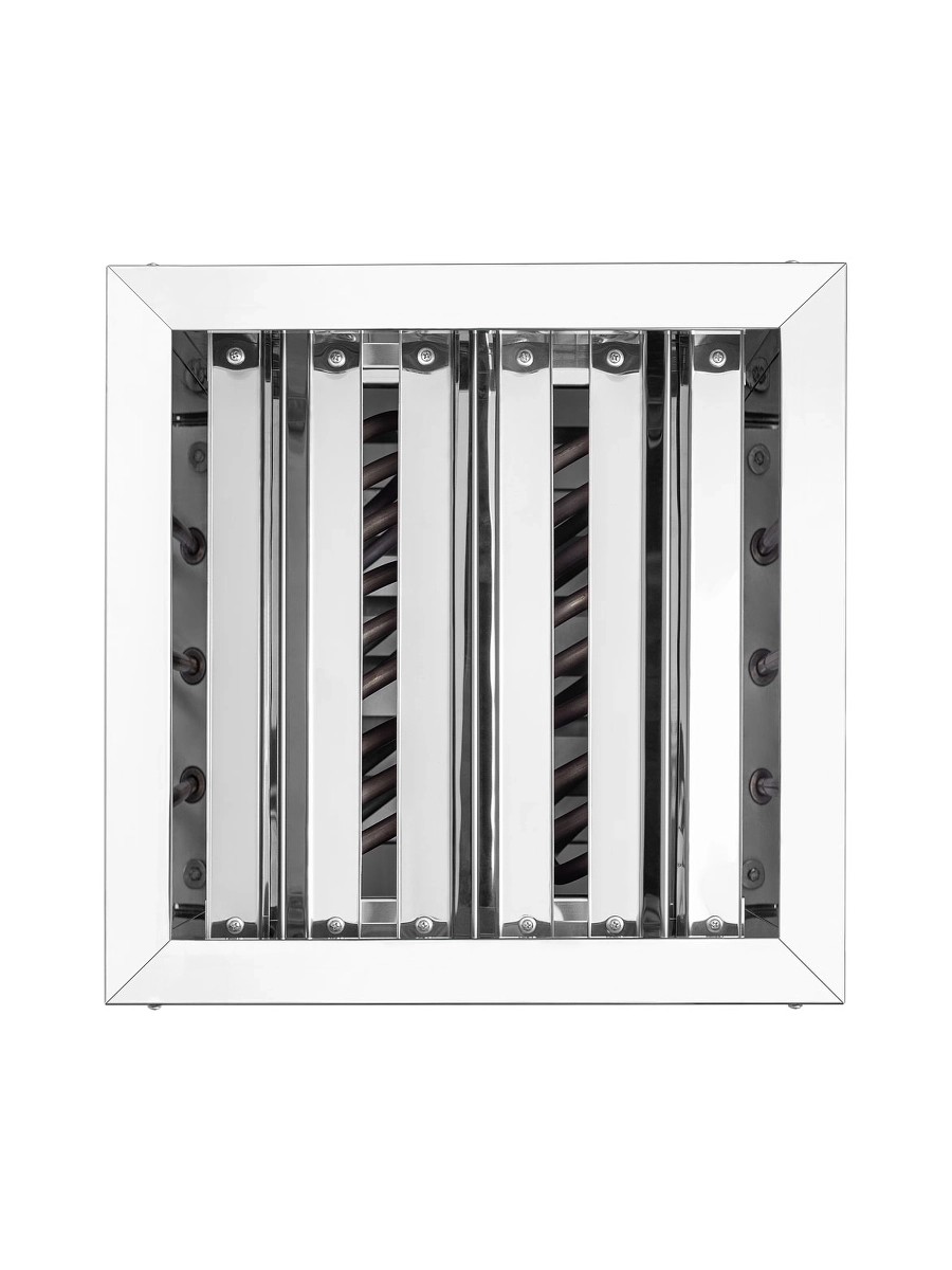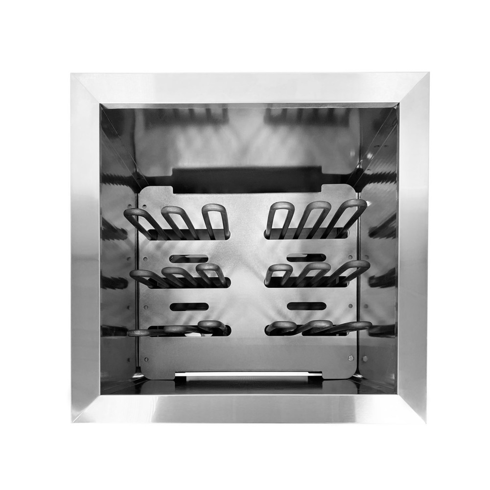 Нагревательным элементом в печке является ТЭН из высококачественной нержавеющей стали. Его диаметр составляет 13 мм. Подобные нагреватели не боятся попадания влаги. Это позволяет устанавливать электрическую каменку как в финские сауны с «сухим» паром, так и в русские традиционные бани с повышенной влажностью, потому что на камни, находящиеся в электропечи можно спокойно лить воду для повышения влажности пара.