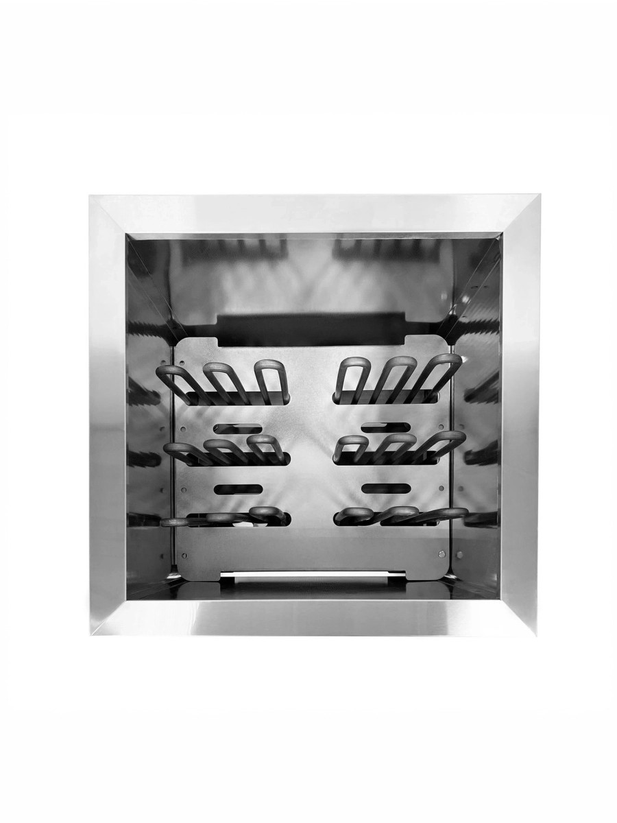 Нагревательным элементом в печке является ТЭН из высококачественной нержавеющей стали. Его диаметр составляет 13 мм. Подобные нагреватели не боятся попадания влаги. Это позволяет устанавливать электрическую каменку как в финские сауны с «сухим» паром, так и в русские традиционные бани с повышенной влажностью, потому что на камни, находящиеся в электропечи можно спокойно лить воду для повышения влажности пара.