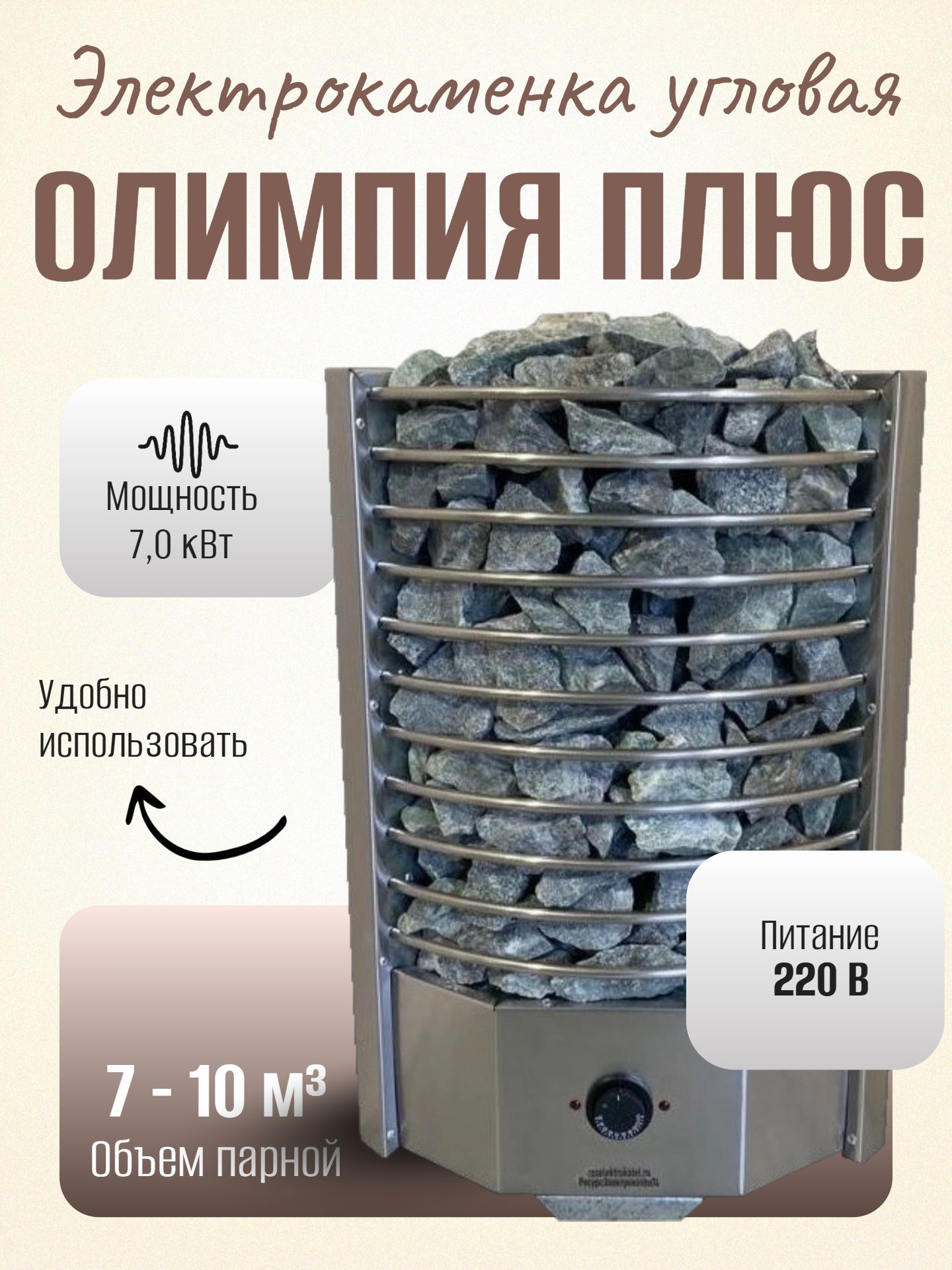 Олимпия изготовлена из высококачественной нержавеющей стали, вмещает от 55 до 75 кг камней и обеспечивает большую поверхность контакта с водой, что позволяет регулировать характер тепла от мягкого до сильного.
