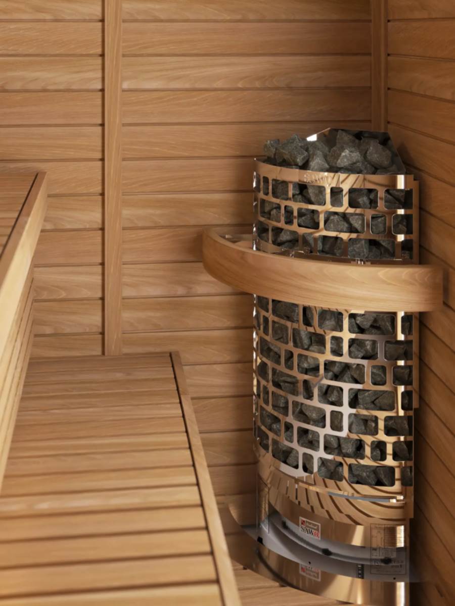 Sawo Aries Round комплектуются внешней панелью управления, что позволяет встраивать электрическую печь в нижний полок.