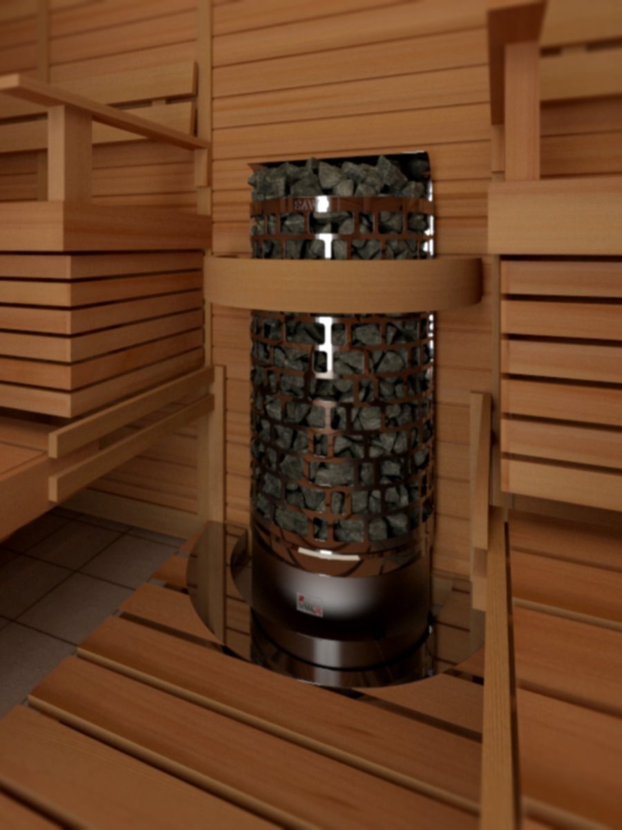 Защищенную от брызг панель управления можно разместить вне парилки сауны.