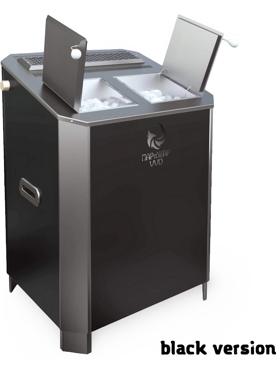 Учитывая отзывы и пожелания клиентов, в новых электропечах предусмотрена закрывающаяся дверью (дверями) теплоизолированная емкость для камней, нагрев которой осуществляется автономно, не зависимо от режима работы парогенератора. А сам парогенератор перегретого пара, в зависимости от исполнения и мощности электропечи, может работать в двух или трех режимах по интенсивности парообразования.