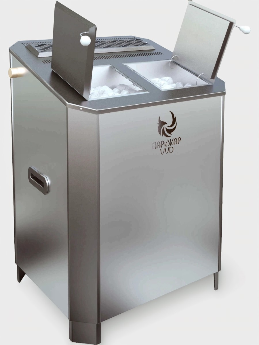 Учитывая отзывы и пожелания клиентов, в новых электропечах предусмотрена закрывающаяся дверью (дверями) теплоизолированная емкость для камней, нагрев которой осуществляется автономно, не зависимо от режима работы парогенератора. А сам парогенератор перегретого пара, в зависимости от исполнения и мощности электропечи, может работать в двух или трех режимах по интенсивности парообразования.