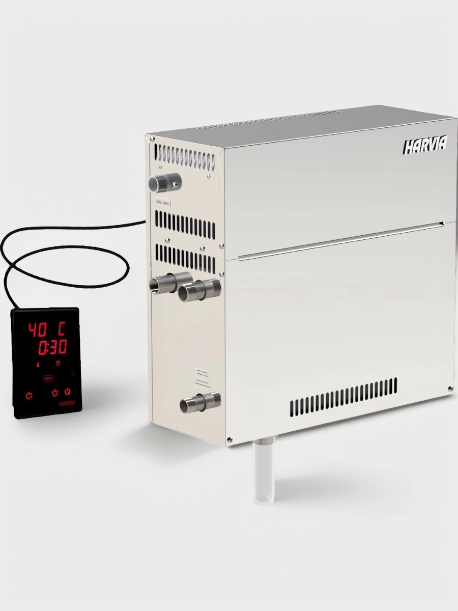 Под прочным внешним кожухом располагаются высококачественные детали с длительным сроком службы. Парогенератор оснащен новыми титановыми электронагревателями, которые гарантируют надежность даже в условиях интенсивной эксплуатации в коммерческих парных. Усовершенствования в системе электроники управления превращают HGD в мозговой центр.